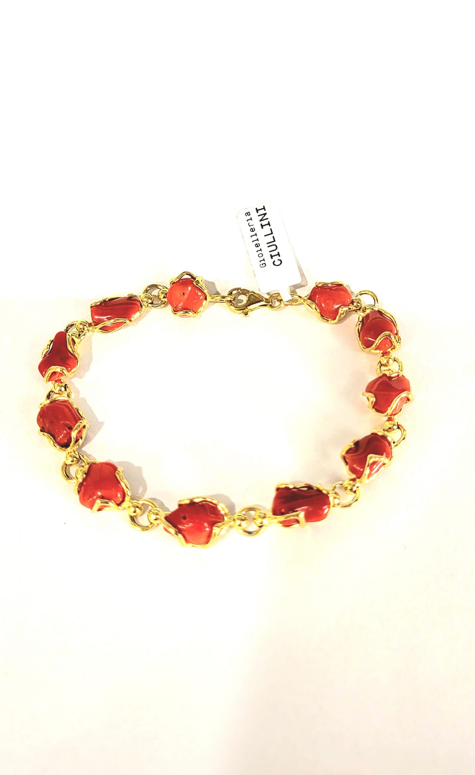 Bracciale in argento dorato 925 con coralli rossi naturali.